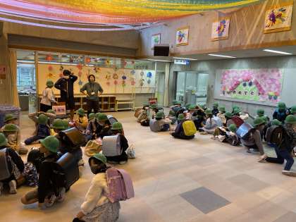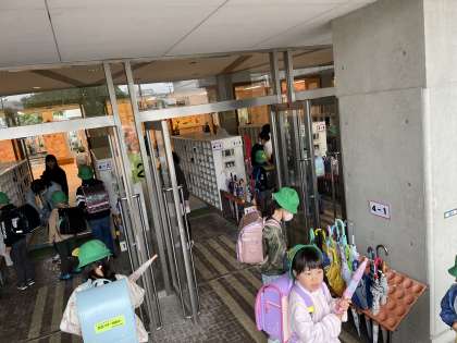 雨天時は、いつもより早めに校舎に入り、集まれ広場で学年ごとに待機をします。