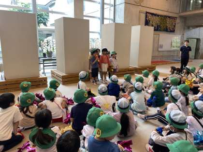 リハーサルが終わった後には学年で集まり、代表児童の掛け声に合わせて「エイエイオー!」とみんなで気持ちを一つにしました。