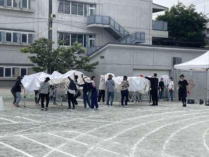 本日は前日準備の中で、PTAの皆様やおやじの会の皆様にテントの組み立てや、杭やペグ打ちなどをしていただきました。