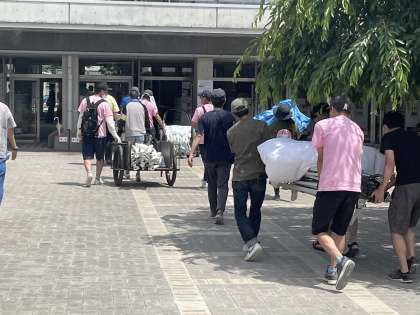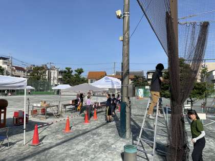 朝は、7時からテントの設営と安全確保。運動会中は受付、誘導。校庭への散水。運動会終了後はテントの片付けと校庭の復帰と多くの力を貸していただきました。