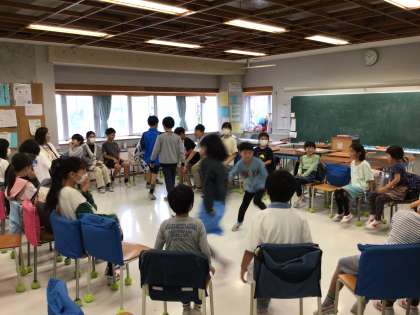 どの教室も自己紹介をうまく遊びと組み合わせ、1年生も元気にお話していました。椅子取りゲームで負け、悔しくて泣いてしまう姿も愛らしい光景もありました。最後は、教室の片付けをみんなできちんとして教室へ帰りました。