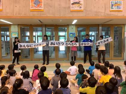 ○あいさつスローガン「みんなに届け あいさつキラキラ花の子スターズ!」