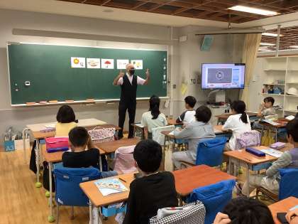 4年生は新しいUnitで天気に合った服装や遊びの表現を学習しています。新しい単語への理解を楽しんで深められるよう、歌やチャンツ、カードを使った活動を取り入れられています。クラス全体やペアでのコミュニケーションタイムでは、活発に友達と交流する様子が見られました。次回以降は曜日の表現を学習していく予定です。