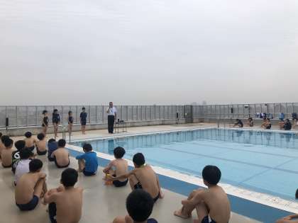 実行委員からは、「事故や怪我もなく、全員が楽しく安全な授業をしていきたい」「今年は平泳で100m泳げるように、落ち着いて息継ぎができるようになりたい」と、目標や高学年として頑張りたいことを宣誓しました。