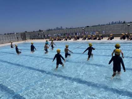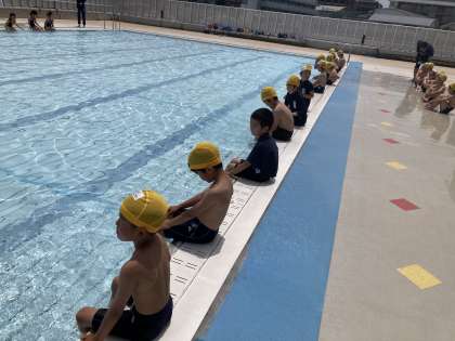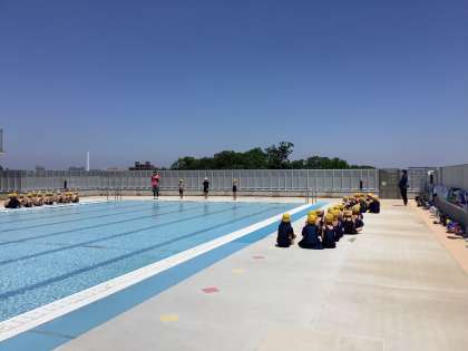 今週の月曜日と水曜日に1年生のプール開きが行われました。