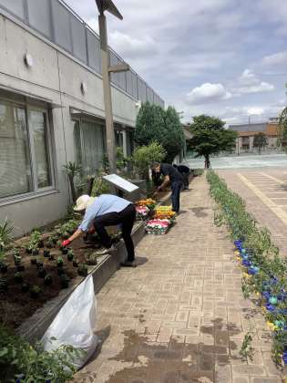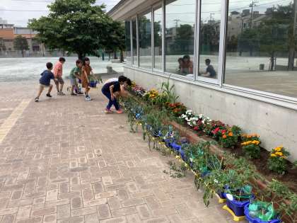 皆さんは職員室脇の花壇が、登下校を見守ってくれているのを知っていますか。学校の施設を使い、植物画を学んでいる地域の方々が植えてくださっています。今日も綺麗なお花を植えてくださっていました。3年生も少しだけ片付けのお手伝いをしました。感謝の気持ちをもち、美しい花壇を大切にしていきましょう。