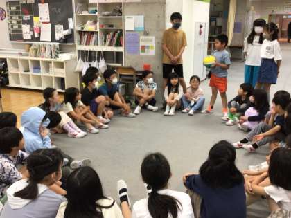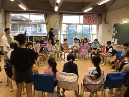 今日は2回目の、花の子交流活動でした。朝の短い時間でしたが、6年生はテキパキと担当を決め、遊びの説明をしていました。今日のめあては「6年生の話をよく聞いて、全力で楽しもう!」でした。めあてどおりに下級生はルールをしっかりと聞いて楽しんでいました。遊びの中で、少しかがみながら1年生とお話をする姿は、優しく頼もしい6年生の姿でした。