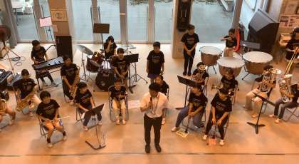 また、ブラスバンドによるオープニングセレモニーとして、ファンファーレと校歌の演奏を行いました。
