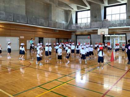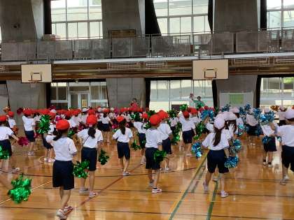 初めに、運動会の表現種目「宇宙に届け!キラキラ花の子スターズ」をユニバースの曲に合わせて学年全員で踊りました。「久しぶりだったけど、覚えてたよ。」「みんなで踊れて、嬉しかった。」と、楽しんで取り組むことができました。次に、クラス対抗ドッジボール大会をしました。1・3・4組と2・5・6組にコートを分けて行いました。「違うクラスの友達と出来て、おもしろかった。」「また、やりたい。」と、感想をもちました。初めての学年お楽しみ会は、充実したものになりました。