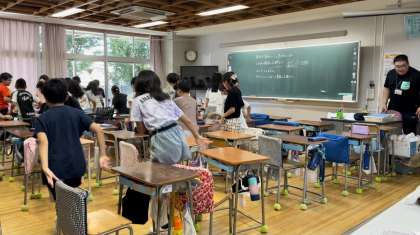 本日、授業時間中に不審者の侵入があったという想定で避難訓練を行いました。子どもたちは、どのような行動をとるべきかを考え、担任の先生の指示をよく聞いて素早く身を守ることができました。
