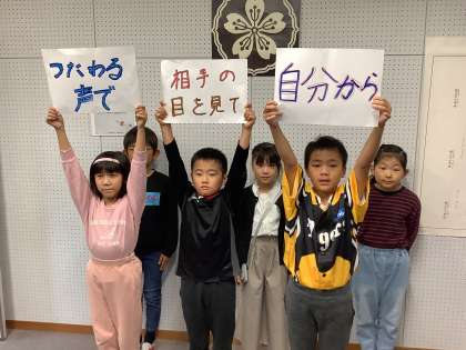 3年生は「自分から」、「相手の目を見て」、「つたわる声で」をあいさつ目標としています。3年生の挨拶で桜丘小学校を盛り上げられるよう、日頃から目標に向かって取り組んでいきたいと思います。
