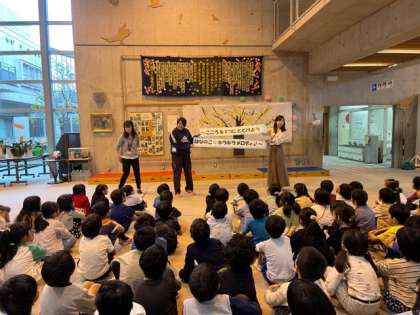 花の子学習発表会は本番に向けて1年生のスローガン「こころを1つにとどけよう花の子⭐︎キラキラメロディー♪」を全体で確認しました。