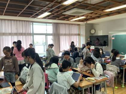 5年生は、canやcan’tを使って自分や他の人のできることを伝える表現を学習しました。canとcan’tの聞き分けは難しいので、初めは少し大変そうな子もいましたが、支援員の先生から聞き取りのポイントを教えてもらったり、繰り返し練習問題に取り組んだりすることで、段々と聞き取る力がついてきました。まとめの時間には、自己紹介の一環として友達に自分のできることを発表しました。次回からは、2学期最後のUnitの学習を始める予定です。