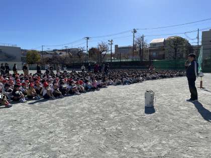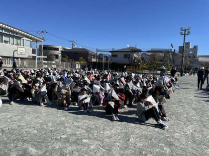今月も予告なしの火災を想定した避難訓練を行いました。いつもと違った避難経路を通った学級もありましたが、6分37秒で避難を完了することができました。校長先生からは、「火事の件数を調べてみたところ、1月から6月で2万件あったこと」や「これからも早く避難ができるようにしっかりと避難訓練に取り組みましょう。」とお話いただきました。火災の時は、ハンカチなどで鼻や口を押さえ、ガスを吸わないようにすることが大切です。普段の学校生活でも全員がハンカチを毎日身に付けていけるようにしてほしいと思います。