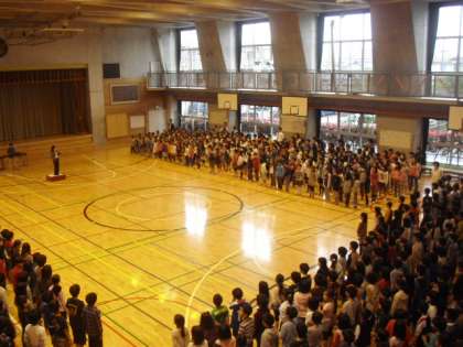 伴奏に乗せて、雨を吹き飛ばすように元気な歌声が体育館に響きました。