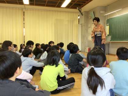 2年生児童は、村上さんの身振り手振りや楽しい雰囲気に、すぐにお話の世界に引き込まれていきました。驚いたり笑ったりと想像を膨らませてお話を聞いていました。楽しいお話をありがとうございました。