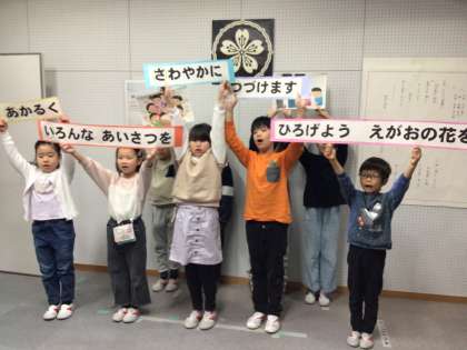 2年生からはあいさつ宣言がありました。1年生のときのあいさつスローガンからのレベルアップを目指して、1年生のときに元気なあいさつで咲かせた笑顔の花を、全校に広げていくことを頑張るという内容でした。