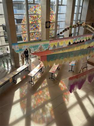 あつまれ広場にも大きな共同作品が飾られ、いつもと違う空間に子ども達も驚いていました。