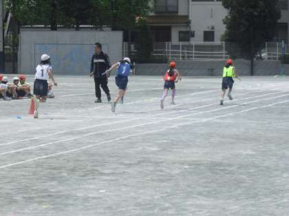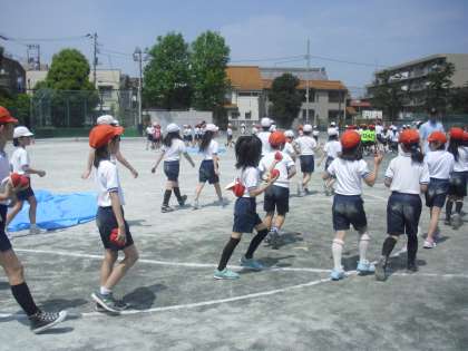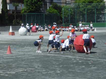 1時間目の運動会練習は、2年生の「ジャンプでGO!」です。大玉を速く上手に転がせるよう仲間と協力して練習しました。2時間目の運動会練習は、4年生の「ポップコーン」です。相手側のビニールシートに紅白玉を投げ入れる競技です。昼には、高学年のリレーの練習も行われています。