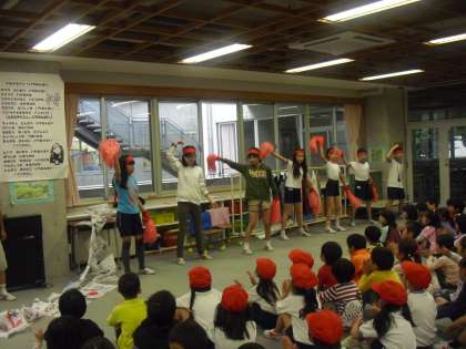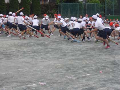 朝の時間には紅白に分かれて応援の練習をしました。応援団の皆さんが、337拍子やエールのやり方をわかりやすく教えていました。1時間目の運動会の練習は、5年生の「奪え!桜丘合戦」です。競技の前には、士気を高める掛け声を子どもたちが考え、練習しました。