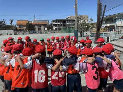 クラスの中で鬼を決めると、鬼役の子どもたちは当日円陣を組んで追いかける側を全力で楽しみました。逃げる方も一生懸命に校庭を走り、どの子も笑顔が溢れていました。