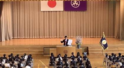 本日、入学式を行いました。6年生は、先週の5日から前日準備として、職員と一緒に体育館の椅子並べや一年生の教室を装飾する等の準備を行いました。今日も、名札付けや校歌合唱等で新一年生を迎えました。6年生の働く姿や式に参加する姿はとても頼もしかったです。新1年生は、入学式では、校長先生の話を静かに聞く事ができ、立派でした。