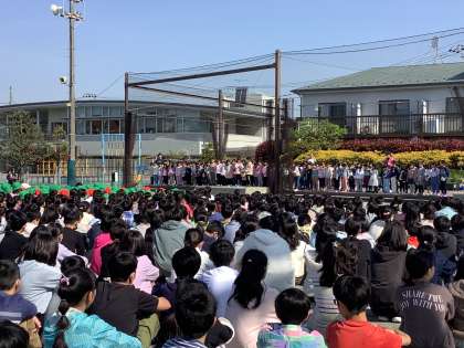 はじめて全校児童が校庭にそろい、朝からとても温かい雰囲気となりました。