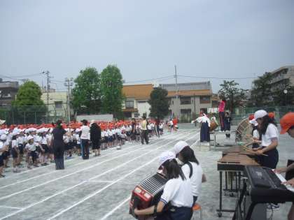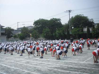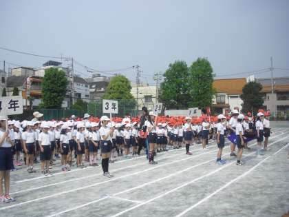 今日の1時間目の運動会全体練習は開会式、閉会式の練習です。最後に、運動会の歌「ゴーゴーゴー」を紅組・白組を力一杯歌いました。