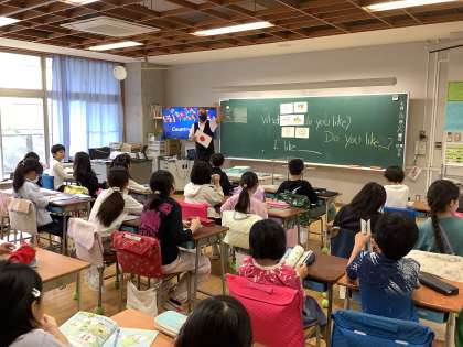 4年生は今週から外国語活動の授業が始まりました。最初の授業では、世界の色々な国の国旗や挨拶について学習しました。子どもたちにとってなじみのある“Hello”という挨拶もあれば、“サラマティアーン”のような初めて聞く挨拶もあり、子どもたちは興味津々な様子でいくつもの挨拶をジェスチャーと一緒に真似していました。次回は子どもたち同士で好きなものをインタビューし合う活動を行う予定です。