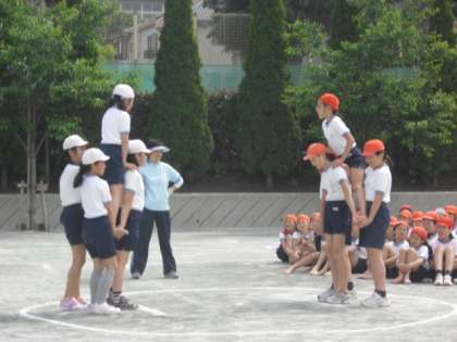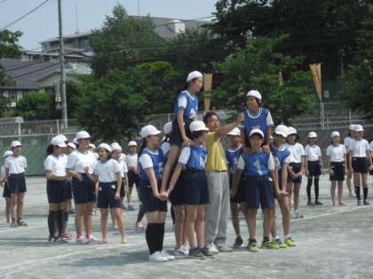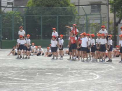 5時間目の運動会の練習は、6年生「決戦!桜丘の陣」大将騎の掛け声とともに決戦が始まります。1回戦は団体戦、2回戦は個人戦です。