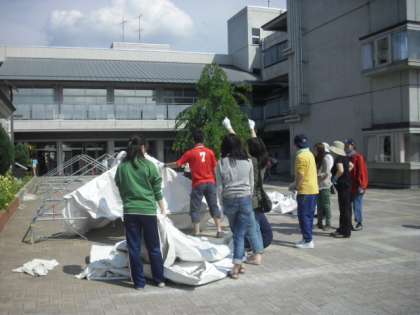 とうとう明日が運動会となりました。昼間の突然の雷雨のため、5時間目の運動会前日準備が予定通りできませんでしたが、その後天気が回復したため教職員で準備をしました。企画委員の皆さんもテント張りのお手伝いをしてくれました。明日の運動会が楽しみです。
