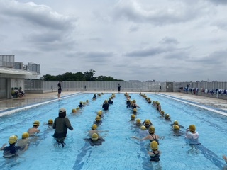 4年生の水泳指導が始まりました。プール実行委員の進行で、プール開きを行いました。その後水慣れをし、蹴伸びやクロールを練習しました。久しぶりの水泳に子どもたちから「楽しい!」「冷たい!」などの声が上がり、表情豊かでした。個人の目標を達成できるよう教員一同サポートしていきます。