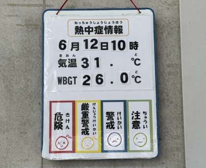 中休みが始まる前などに気温や暑さ指数(WBGT)を測定し、