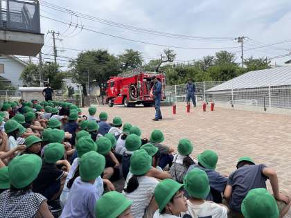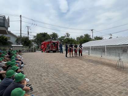 また、世田谷消防署宮の坂出張所の方にお越しいただき、消火器の使い方を教えていただきました。それを受けて、教員が実際に消火器を使ってみる様子を見学しました。初期消火の大切さや火の取り扱いには注意が必要なこと等を学ぶことができました。