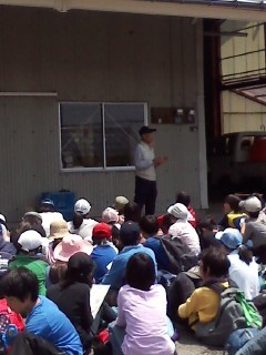 只今、村めぐりの最中です。宮田農園で川場村やりんごのお話を聞いています。