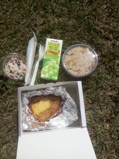 田園プラザに到着しました。お弁当の時間です。行動班で楽しく食べます。