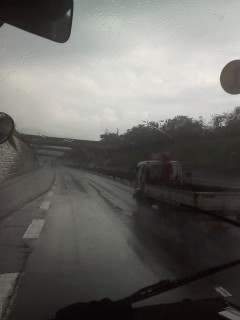 午後1時20分、田園プラザを出発しました。出発の頃、雨が降ってきました。関越道は、強い雨が降っています。