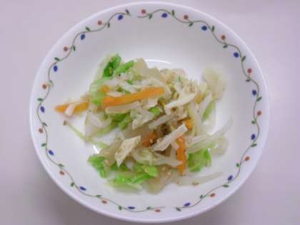 野菜とたくあん、さきいかの組み合わせがよく、味付けもせん切りたくあんの汁を使うので塩分の心配もありません。