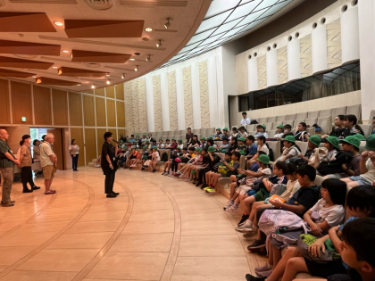 また、常設の彫刻作品と同じボーズをとってみたり、美術館の建築の中から幾何学の形を探したりして、楽しむ姿も見られました。そして、最後には「面白かった。また来たい!」という声も。本物の作品に触れ合う貴重な体験をすることができました。