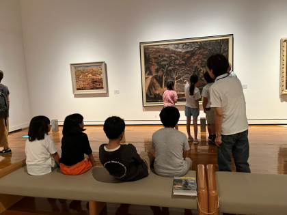 企画展覧会の「須田国太郎の芸術」では、重厚な油絵の前に立ち、鑑賞リーダーの方や友達と作品から感じ取ったことを伝え合いながら鑑賞します。