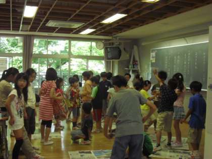 今回も、6年生の花の子リーダーが遊びを計画しました。「指さししりとり」や「新聞紙乗りゲーム」など、新しい遊びを考えているところもありました。