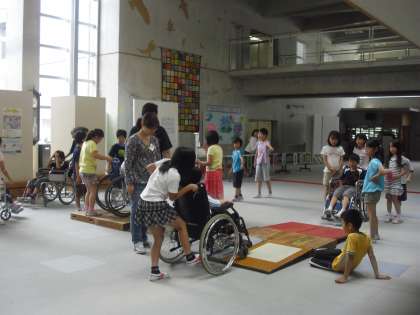 車いすを押すときには、必ず乗っている方のことを考えて声をかけることを学びました。坂道や障害物を通る時は、後ろのレバーを踏んで静かに動かす練習をしました。