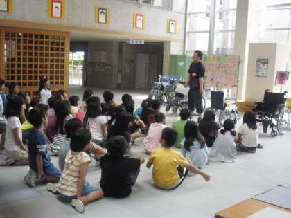 デイホーム桜丘の職員の方より、車いすの使い方を教えていただきました。