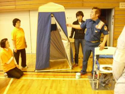 救護・衛生担当は、マンホールトイレとプライベートルームの設置訓練を行いました。