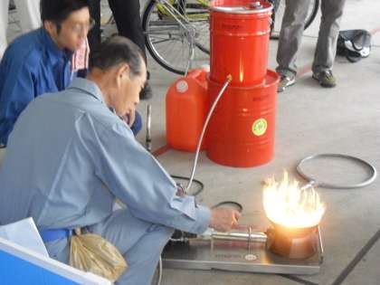 給食・物資担当は、バーナーの操作訓練を行いました。