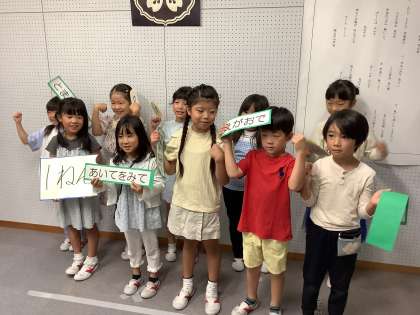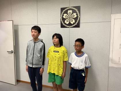 1年生のあいさつ宣言は、1年生の挨拶目標の発表から始まりました。「『あいてを見て』『げんきに』『えがおで』あいさつをしよう。『とまることもわすれずに』と、笑顔で元気いっぱい発表していました。また、よい挨拶の例を実演してくれました。1年生、生活委員の5、6年生、桜丘中学校の生活委員、みんなの力で、挨拶名人がもっと増えていくことと思います。