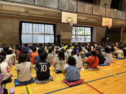 10月から図工専科の先生と教室が変わること、たくさんの福祉に関する体験が終わりに近づき、これからは花の子学習発表会に向けて、発表の準備をしていくことについてのお話がありました。