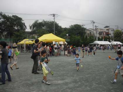 天候の関係で、一部のお店の場所が体育館に変更になりましたが、子どもまつりが始まる時間には、雨がやみました。お祭りの最後は、東京農業大学応援団大根おどり&チアリーダー&ブラスバンドの方々によるセレモニーです。後片付けから雨になってしまいましたが、関係者の方々が協力して、無事片付けも終了しました。子どもたちだけでなく、保護者・地域の方々の笑顔があふれる楽しいお祭りとなりました。