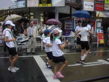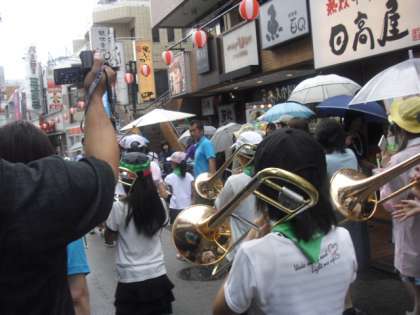 7月21日、経堂まつりが行われました。ステージでは、「こんにちはトランペット」「ディズニーメドレー」「校歌」を演奏しました。雨の中たくさんの地域の方々が集まってくださり、3ヶ月間の練習の成果が発揮できました。天候の心配もありましたが、保護者の方々を始め多くの方々の協力で、無事パレードまで終えることができました。子どもたちもはじめは緊張していましたが、最後は達成感に満ちた顔でした。