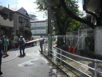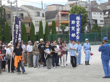 9月29日(土)10時から三町会(経堂一丁目町会・経堂南町会・桜丘一丁目町会)・桜丘小学校合同の防災訓練が行われました。地震体験訓練・防災倉庫見学・マンホールトイレ設置訓練・応急救護訓練等に、参加者は真剣に取り組みました。